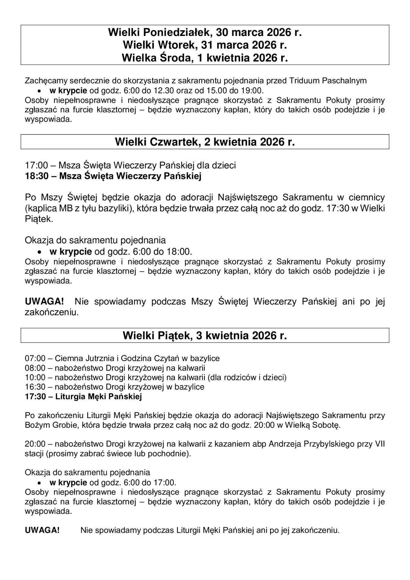 OGŁOSZENIA PARAFIALNE 19.04-26.04.2026 r.